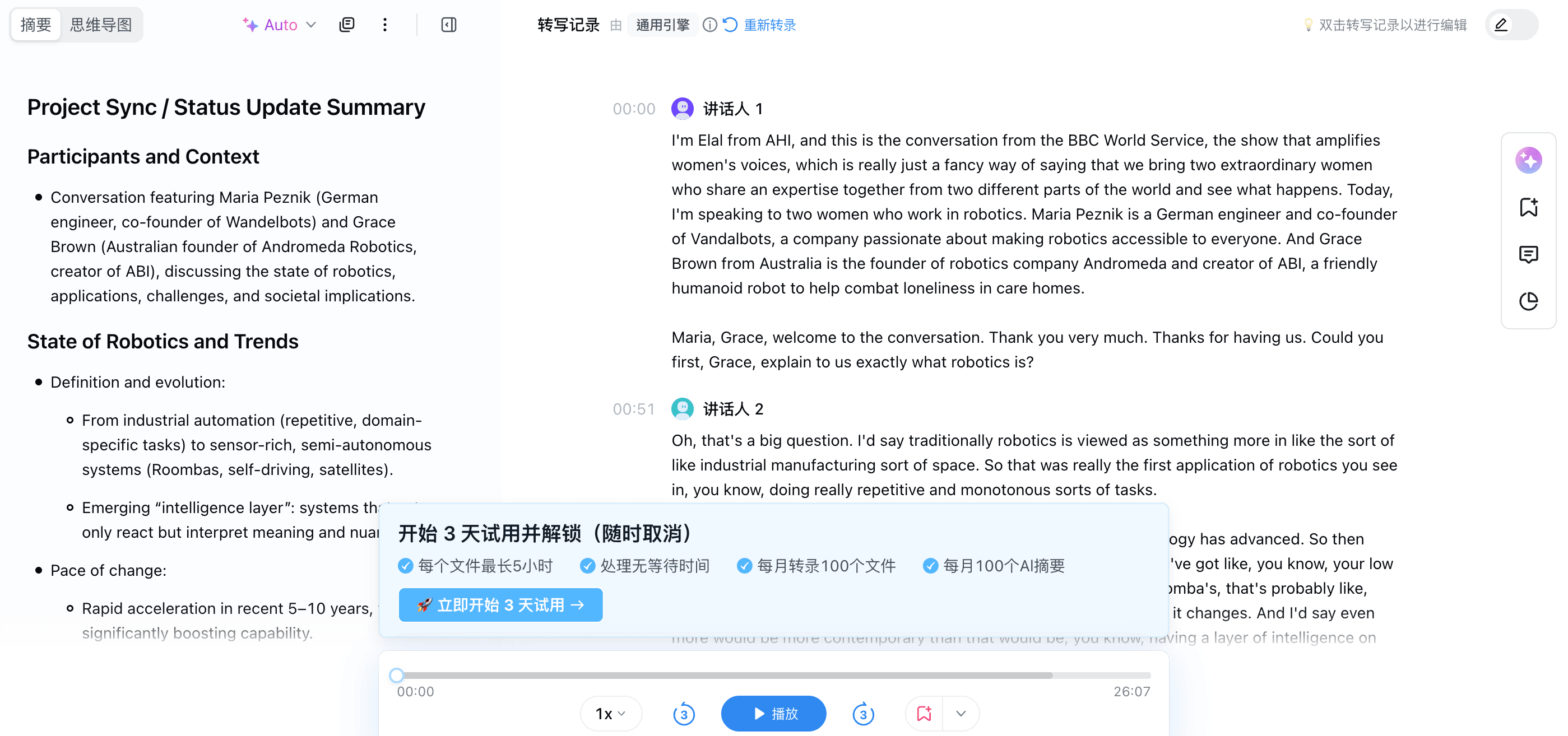Notta also provides transcription, translation, and summarization—quickly turning meetings or recordings into verbatim texts and summaries. It offers a solid experience, especially for individual users.