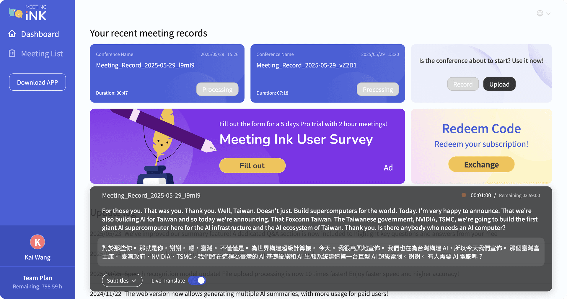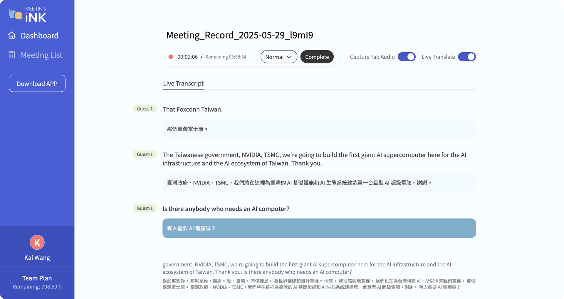 Meeting Ink’s live captions, real-time meeting translation, and AI-generated meeting summaries have become essential tools for enterprises, public institutions, and global teams undergoing digital transformation.
