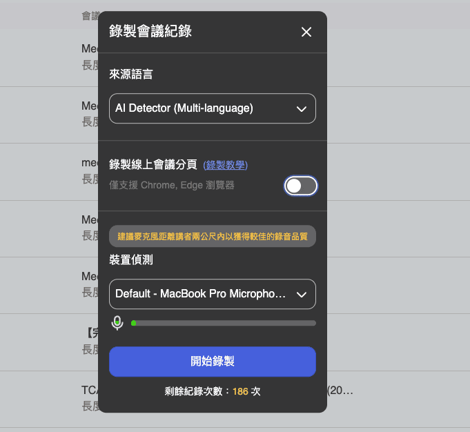 - Browser Tab Audio Recording: Supports Chrome and Edge browsers, enabling you to record audio from your browser tabs, ensuring every detail of the meeting is captured.