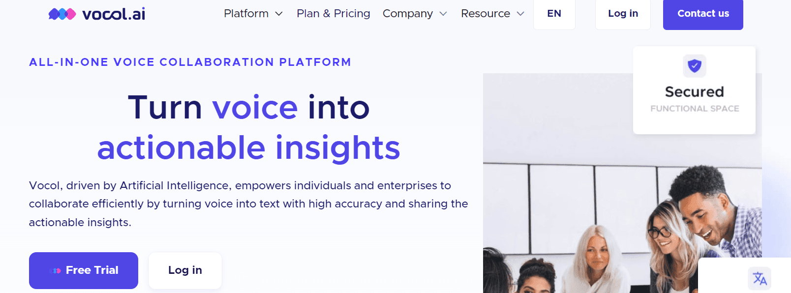 Vocol.ai is a similar service that provides essential features like recording, transcription, translation and AI summarization. It supports live recording, file uploads, and integrating with Google Meet and Teams by using a recording bot, which is suitable for the users of these particular services, but limits its overall compatibility with other meeting software, video recordings, or podcasts.