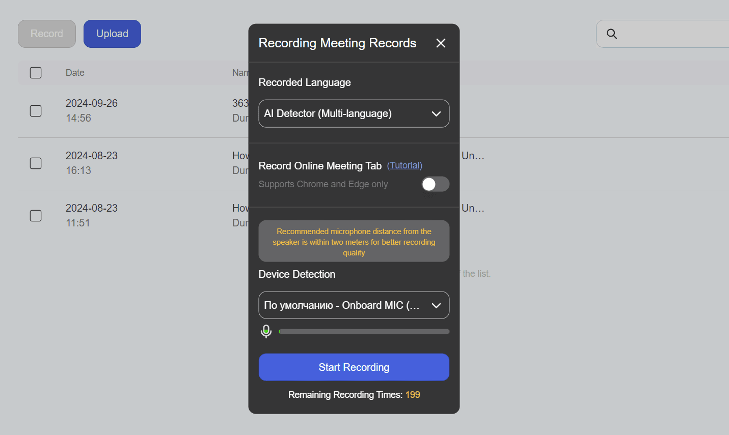 - Microphone Recording: Ideal for capturing and transcribing offline lectures or in-person classes. Simply use your device’s microphone to record the session.