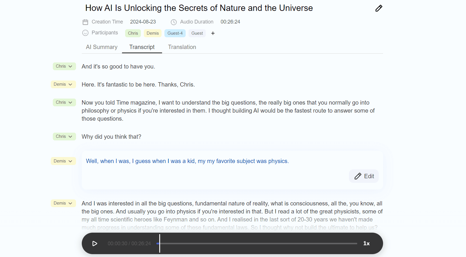 With just a few clicks, you can turn your lecture into text. You can trust the accuracy of the transcription—Meeting Ink’s English transcription accuracy can reach up to 95%. If you need to revisit any unclear sections, the original audio is always accessible, and the editing function allows for easy adjustments. Once the transcript is complete, you can download or share it.