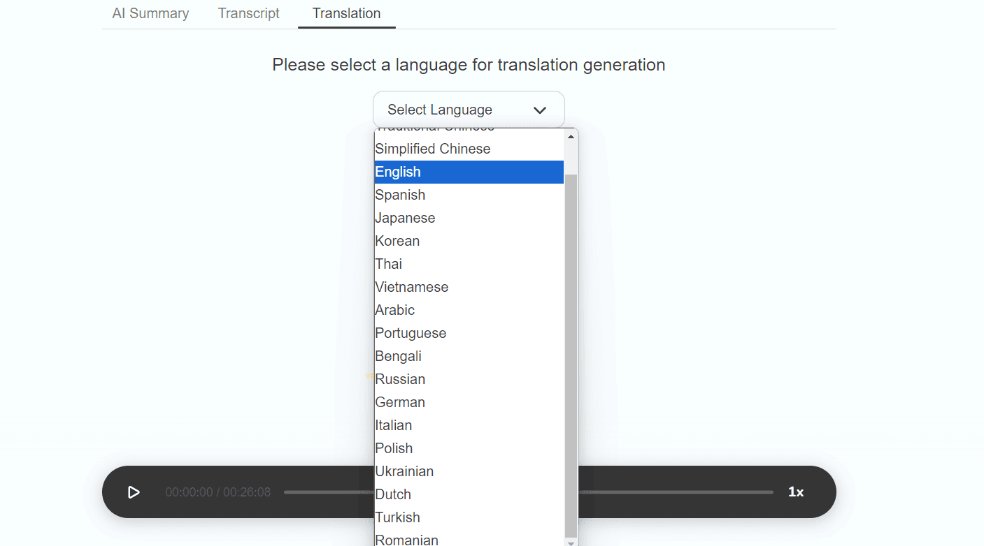 Meeting Ink allows you to generate a summary in a language different from the original lecture, making it easier to review the content in your preferred language. Once created, the summary can be easily downloaded or shared with others.