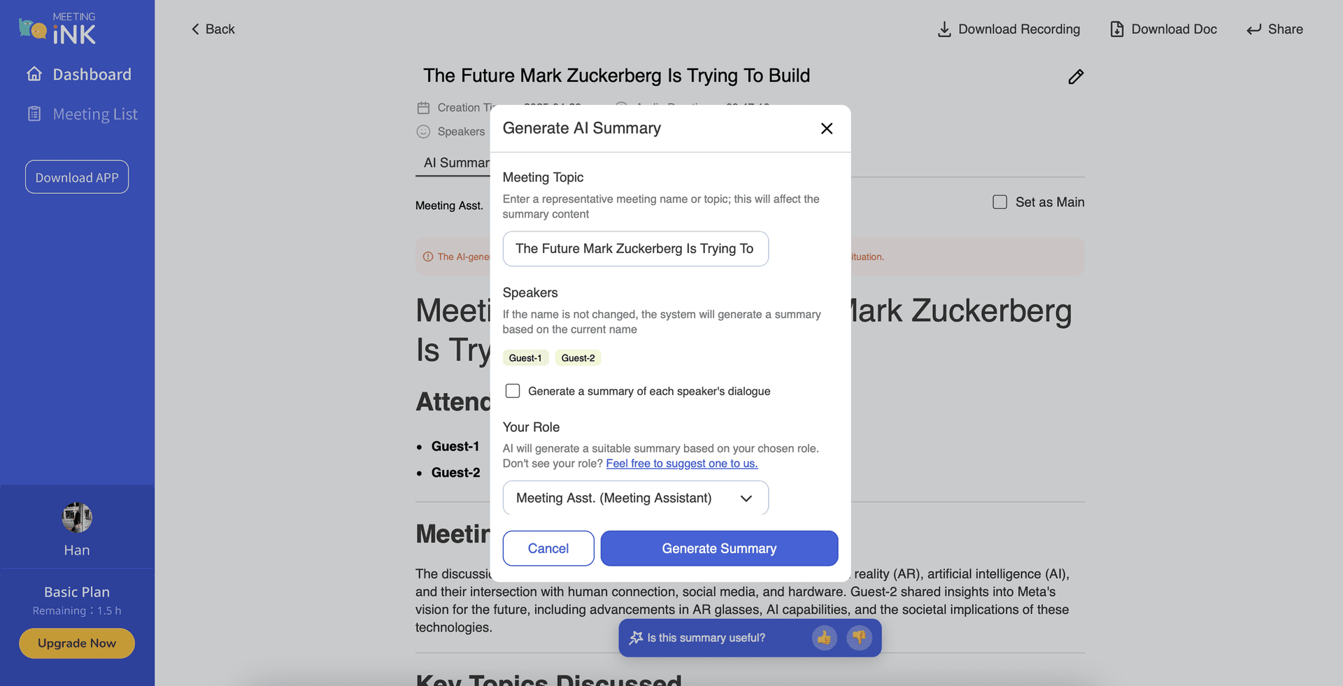 📌 Meeting Ink | Smooth Process, Suitable for Both Live Recording and File Uploads