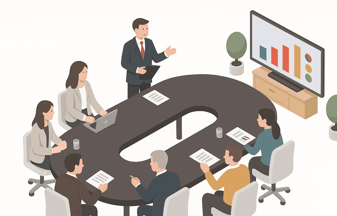 團隊內成員輪流口頭報告案件進度。多數的資訊仰賴顧問手動紀錄。會議時間往往太長,會議結束後常常會失焦。